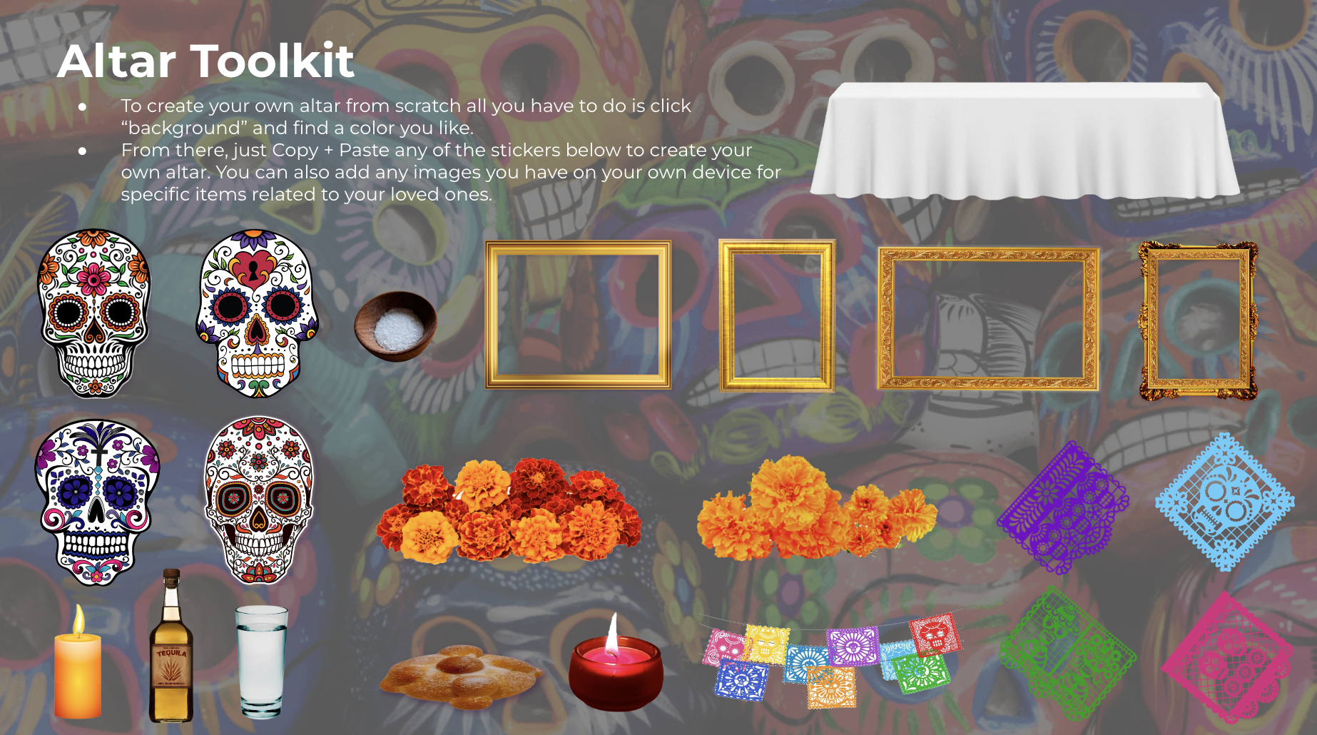 Dia de los muertos, build your own virtual altar tool kit.